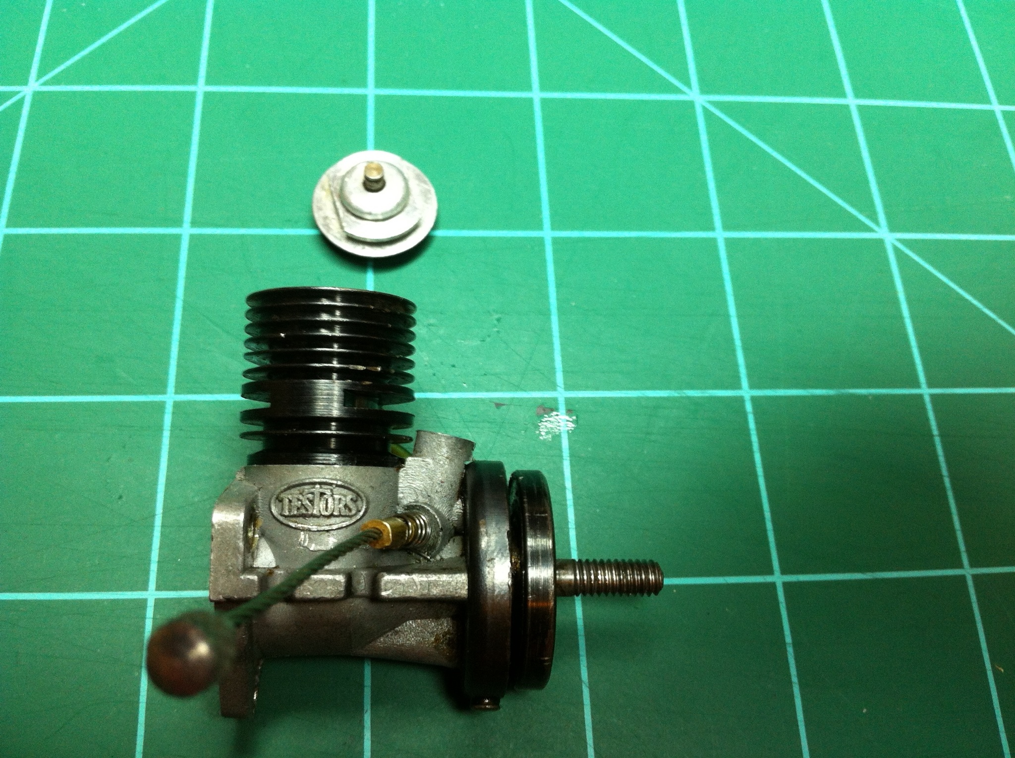 About three weeks ago and older gentleman gave me some of his son’s old R/C stuff from the ’80s. Most of it is useless to me, like an old homemade battery pack and some outdated chargers. Amid the pile of stuff was a Testors McCoy .049 engine. The gentleman said that it used to run and his son had used it on a control line airplane. The engine was in real bad shape. The motor was covered in tarnish, the shaft would only turn about 3 degrees, and I later found out that the rotomatic starter spring was broken. After I got home I decided to take it apart, clean it up, and get it running.