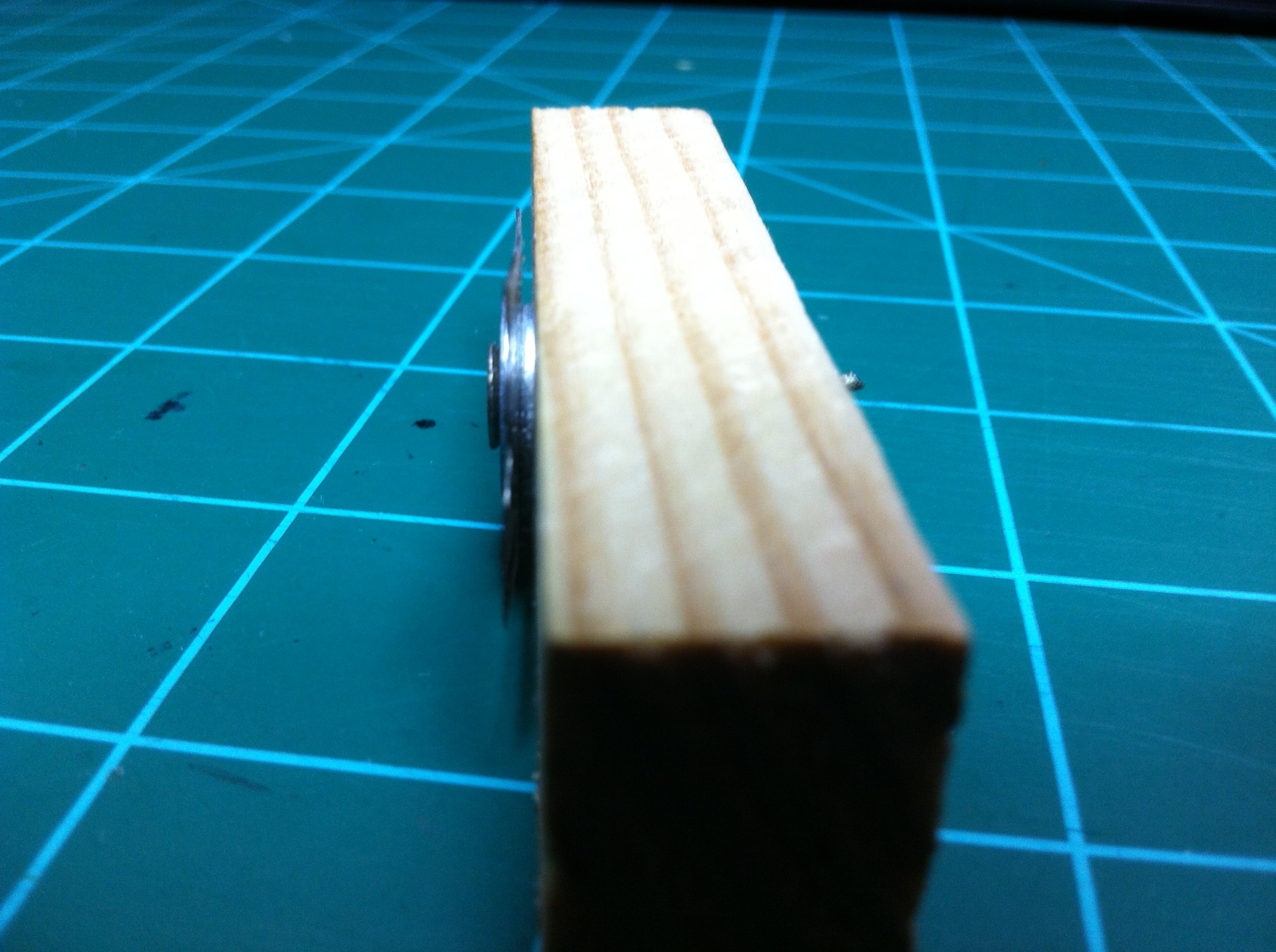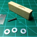 This balsa stripper is very easy to build. I took a Jenga block and drilled a hole perpendicular to the block in the center of the wider side. I then took a washer and put it on a wood screw and then slid a straight razor blade onto the screw. Then I put a washer, or two depending on how thick of a slice I wanted to make, on the screw and then screwed it into the hole in the Jenga block. So the order in which the stuff goes on the screw is: washer, razor blade, washer/s (these washers determine how thick of a slice you want to make), then the Jenga block.