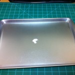 I found a small brass tube about 3/16″ diameter and it was about 3-4″ long. I knew that I didn’t have any brass sheet like the tutorial called for, but I did have a Dollar Tree cookie sheet I bought a few days before for the metal. Although I didn’t have the exact parts that the how-to called for, I knew I could build a prop with what I had laying around.