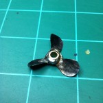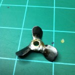 As I was sitting bored at my desk surfing the web on RC boats, in particular homemade RC boats, I stumbled across a how-to on making your own brass propellers. When I have fooled around with making RC boats in the past, I’ve always had trouble when it came to making props. I once made a prop out of clay and have also used a prop that goes on the tail-rotor of a little Air Hogz heli, as you can imagine, neither one of these worked very well. When I saw this how-to, and saw how simple it was, I started scrounging up parts . . .