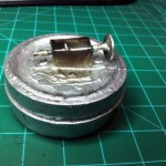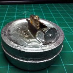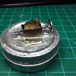 So the main construction of this lamp is made from a tuna can and a Ball mason jar lid. I took the mason jar lid and band and stuck them on top of the tuna can and used a generous amount of JB Weld to adhere the lid assembly to the tuna can. I had to fill in the little bit of a gap that was between the tuna can outside wall and the lid band inside wall because I didn’t want any of the oil leaking when I used the lamp.