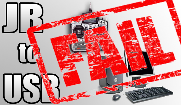 To make sure everything was working fine still and that I soldered the USB plug on correctly, I hooked up my sim cable with the Esky plug on it and fired up the simulator. It worked like before (except it wasn’t finicky 😀 ). When everything checked out fine, I closed down the simulator, put the JR plug on, plugged in my JR radio, and then went back to the simulator. Nothing. Didn’t work. I then went to my computer’s control panel to calibrate it in the gamer control’s settings and Microsoft didn’t even recognized it. So I then began trouble shooting. I rechecked my solder joints, checked continuity on the wires, made sure my transmitter was in the right mode with the right settigns, as a test I switched wires on the plug (Ground became data and data became ground), googled, asked on RCgroups, . . . Still nothing. It was a big let down because I had spend a couple of hours on it and even more time troubleshooting.
