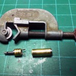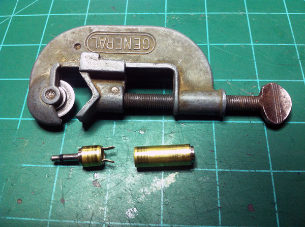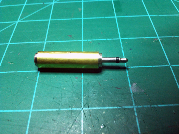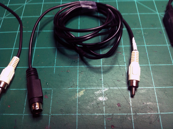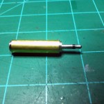 I took my 1/4″ to 1/8″ mono plug adapter and cut off the plastic housing which exposed a metal tube. I couldn’t access the center pole of the 1/8″ plug that I needed to solder to, so I took my mini pipe cutter and cut the metal tube near the 1/8″ plug side. At this point I found online the JR trainer port pinout and the Esky trainer port pinout and using this information I figured out what wires need to go to where on my new JR cable. I went and got me an RCA cable that had a male connector on one end and decided to use this for the JR sim cable I was making. I then soldered onto the end of this cable the 1/8″ mono plug and heat shrinked it all up.
