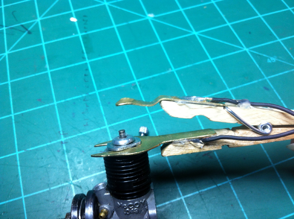 I works just like I hoped it would’ve. It slides right onto the engine, and then clamps on. If you see in the picture the top piece of the clip is got a bend in it. This is so it stays on the center post of the glow plug better. I made this bend by using a center punch and repeatedly using it until it was bent in the way I wanted. I tried it out with a battery and it makes good connection with the glow plug and makes it glow red hot. I think this free version works just as good as the $12 version.