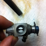 After cleaning the carb, I reassembled the engine. I then like the engine to prevent any more trouble. Sunday evening I attempted to get the engine running. I got it to run in short 30 second bursts or so, and once I figured out why it kept dying (old fuel in the gas tank that mixed with my new fuel), my glow igniter went dead on me. So now I am jus waiting until I have time to mess with it some more. I’m pretty sure it will run fine with some all-fresh fuel. But we’ll see. . .