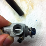 After cosmetically cleaning the outside of the engine, I went back to working on the carb. After sitting for about 10-15 minutes, it was finally able to move. I use Q-tips to clean the whole carb. I then moved the throttle lever back and forth repeatedly to get it ‘broken in’. While doing this I would often add alcohol to the carb to help cut through any remaining oil.